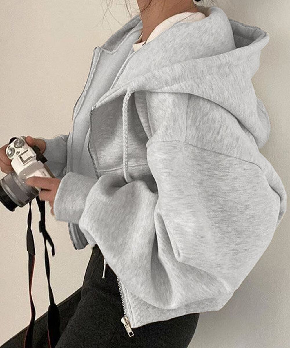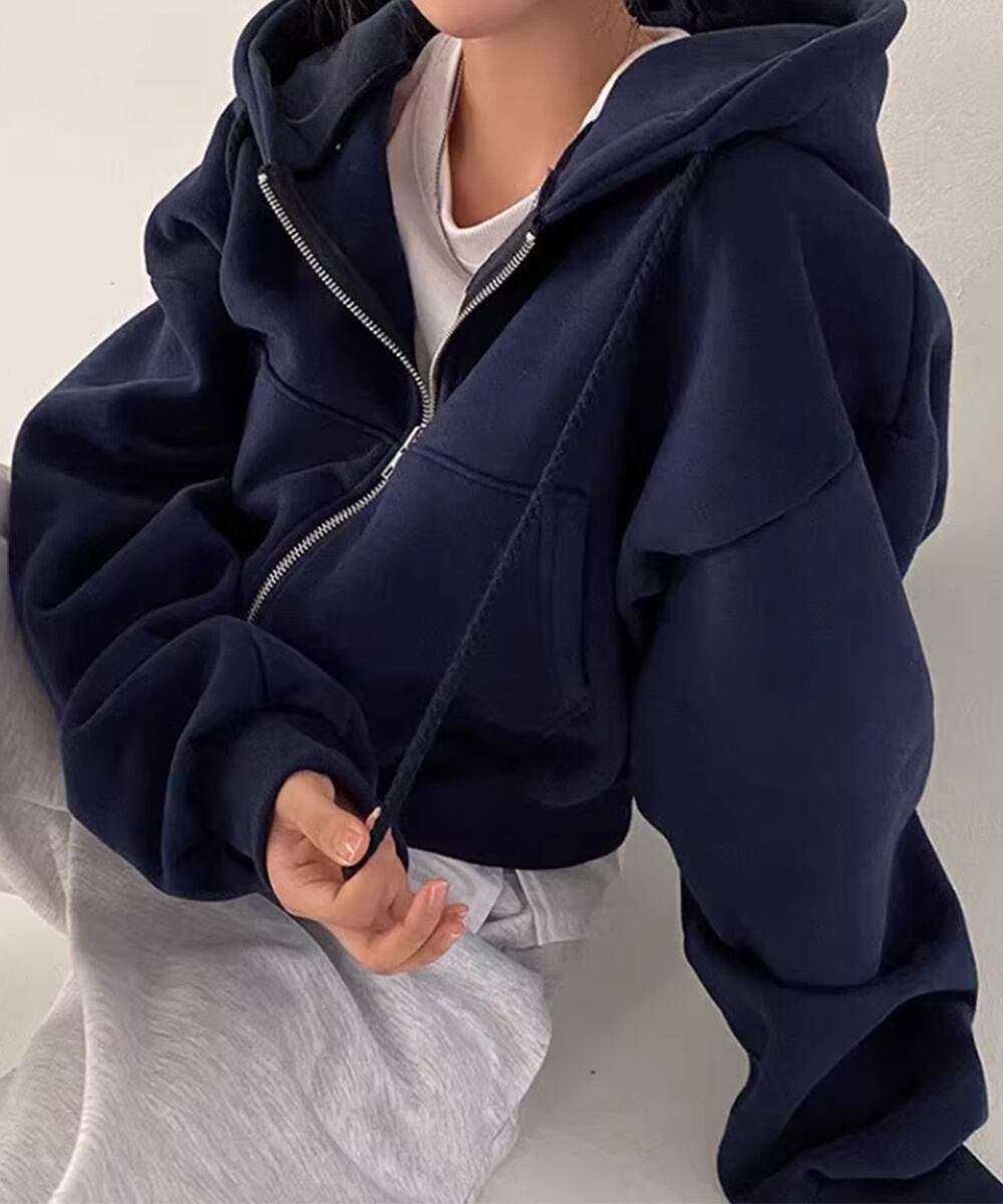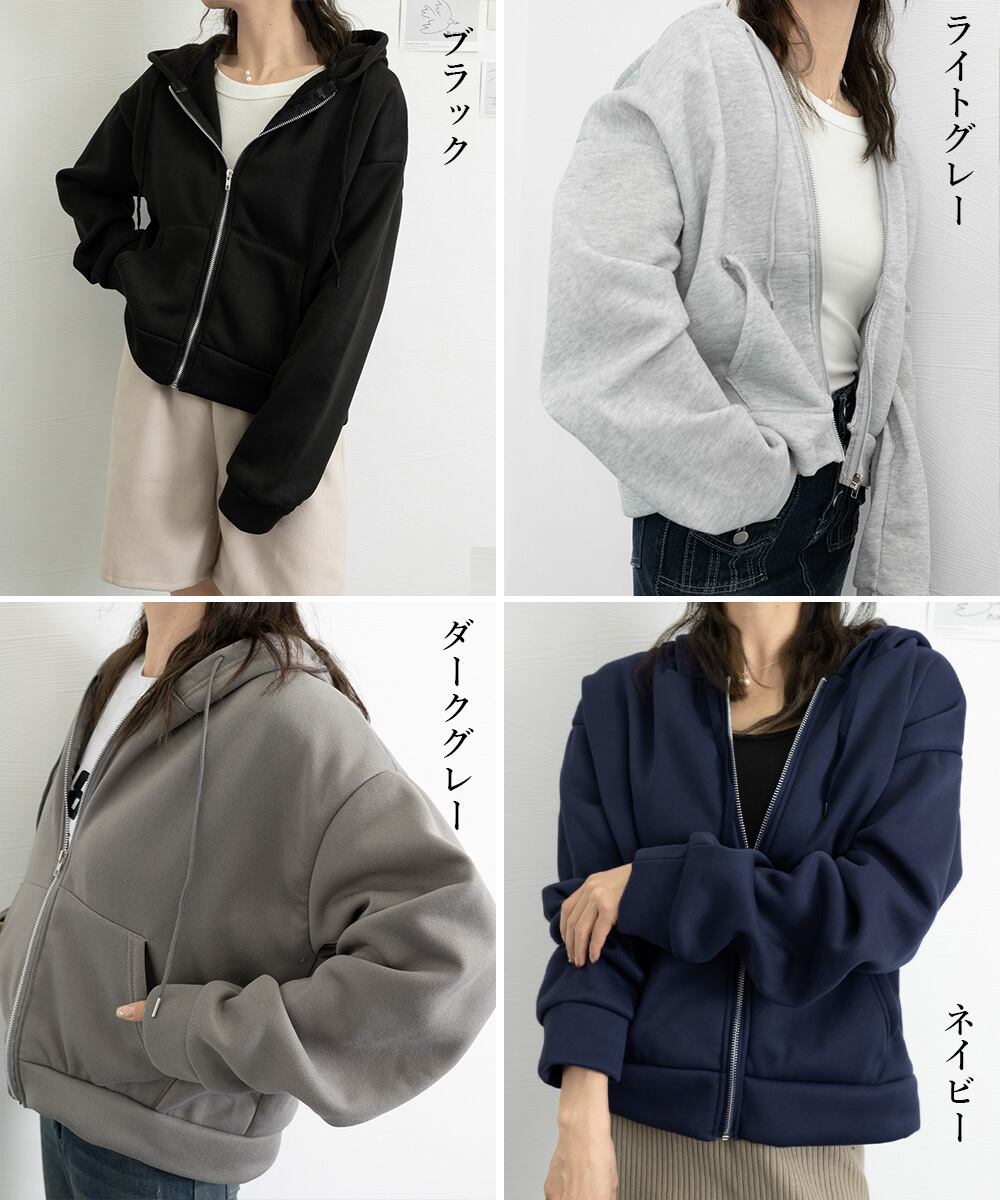 【日本倉庫即納】 ジップパーカー 韓国ショート丈フーディー