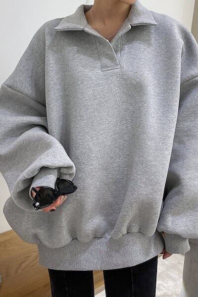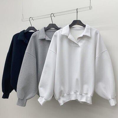 ニットセーター韓国chic秋冬シンプル気質けだるい風ゆったりヘッジグレーパフスリーブパーカートップス
