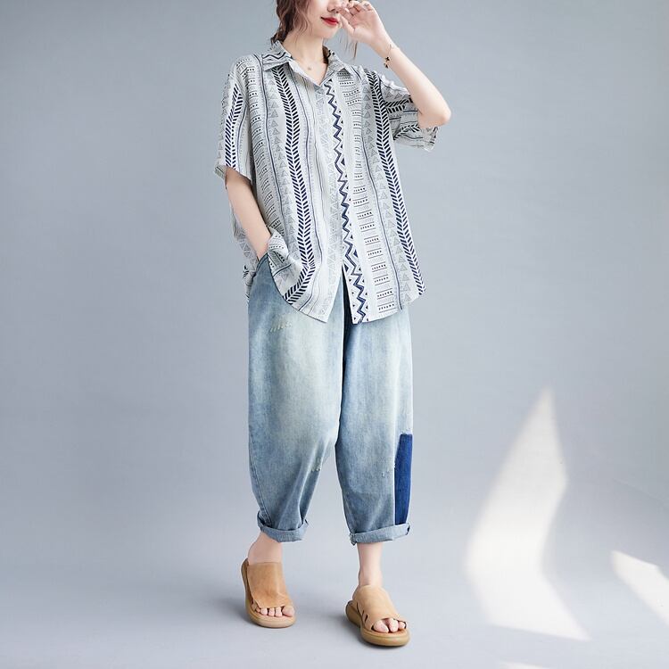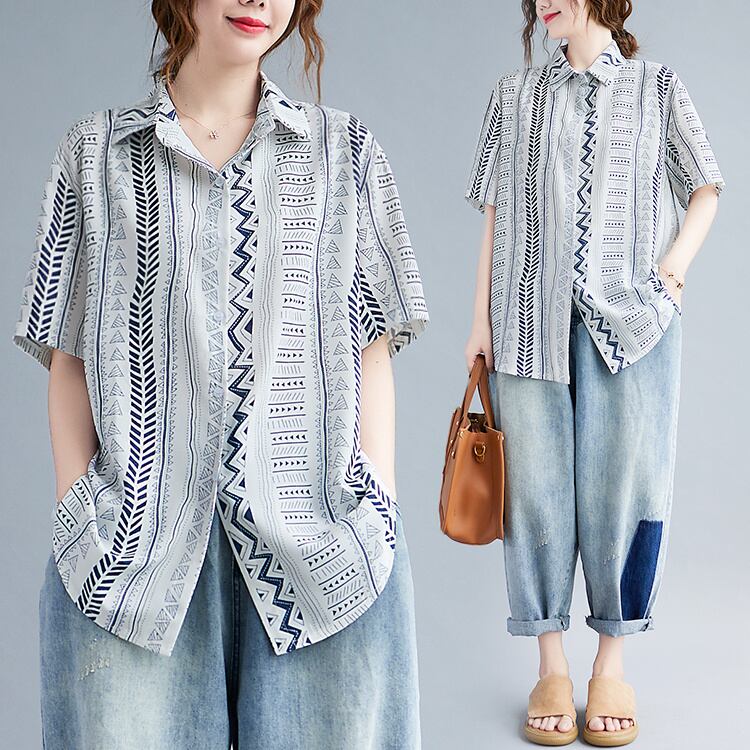 どんなコーデにもピッタリ INSスタイル 幾何学模様 半袖 文学 シャツ カーディガン トップス 日焼け止め服