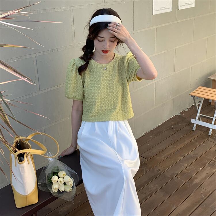 着痩せ効果 韓国ファッション sweet系 トップス 半袖 気質 肌にやさしい ラウンドネック お出かけ 蝶結び