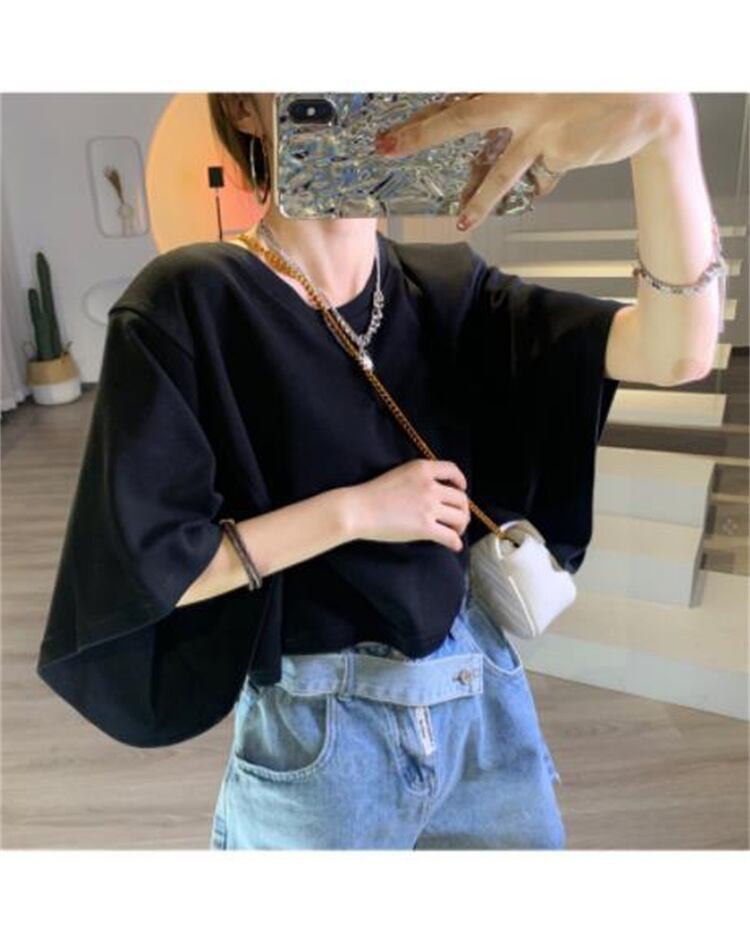 柔らかい履き心地 早い者勝ち 半袖 ドルマンスリーブ Tシャツ スリム デザインセンス 短い トップス