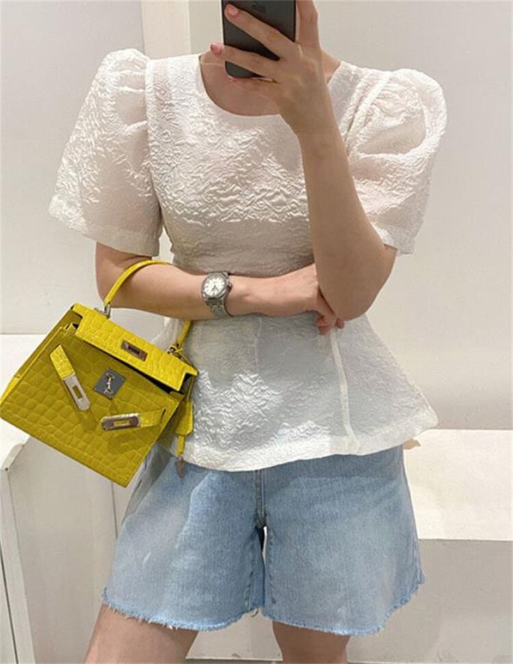 パフスリーブ トップス スリム フォールド 半袖 快適である
