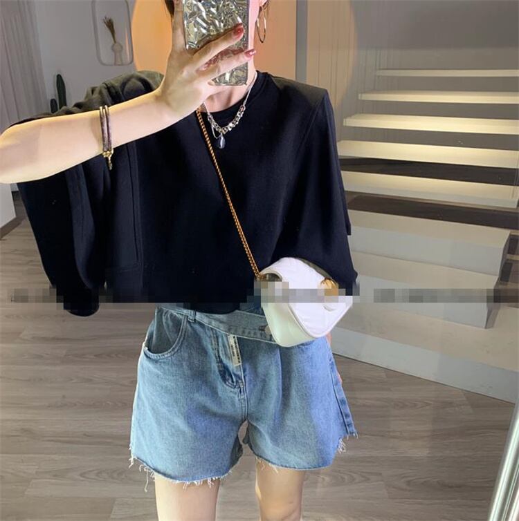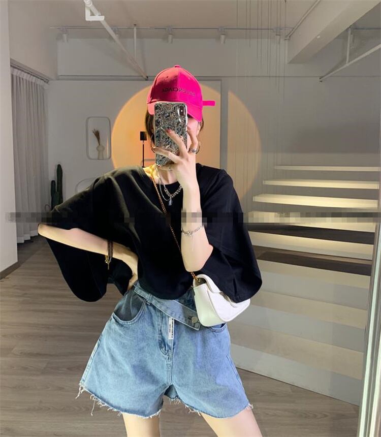 柔らかい履き心地 半袖 ドルマンスリーブ Tシャツ スリム デザインセンス 短い トップス