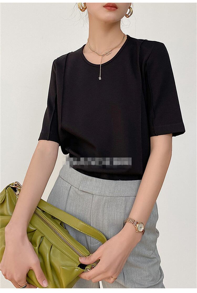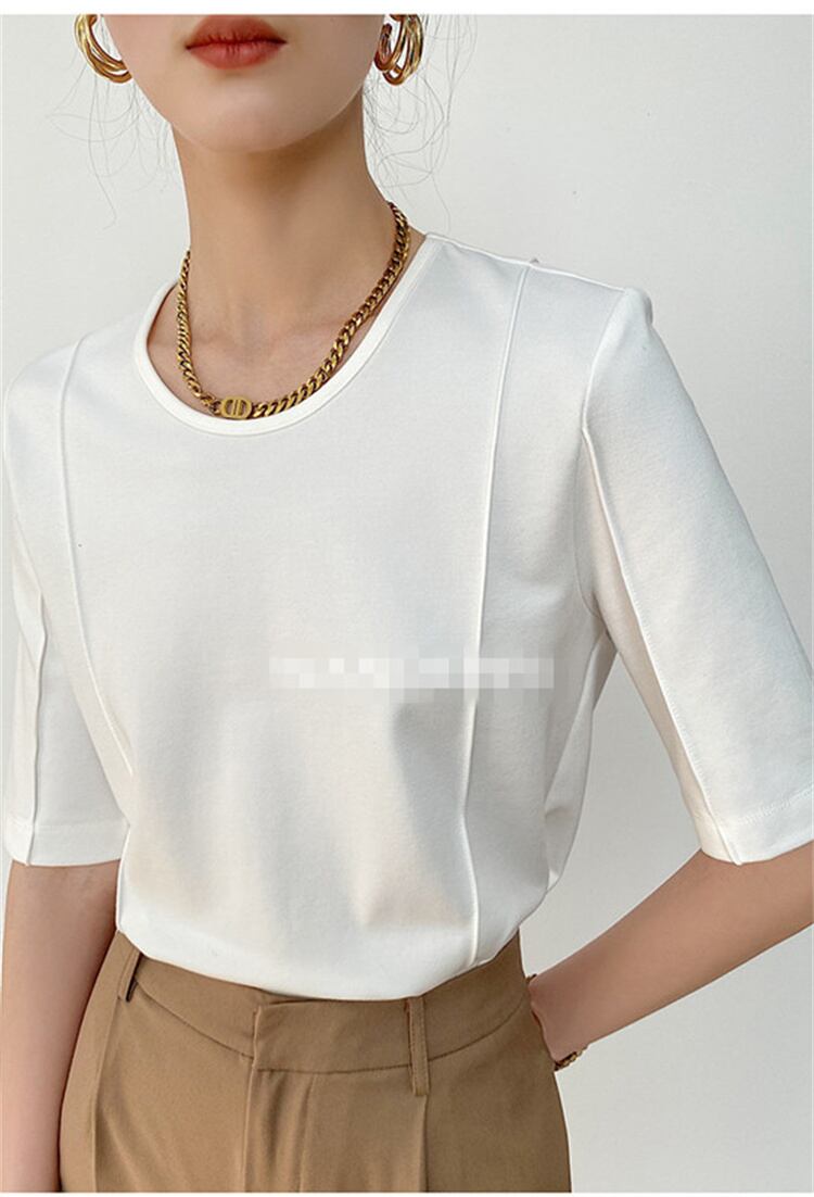 ラウンドネック トップス アイロンなし コットン ミドルスリーブ Tシャツ サマー 半袖 デザインセンス