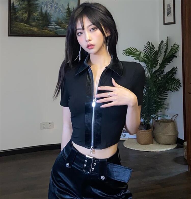 待望の再入荷です 激安セール 縫付 ジッパー カーディガン Tシャツ デザインセンス 半袖 トップス