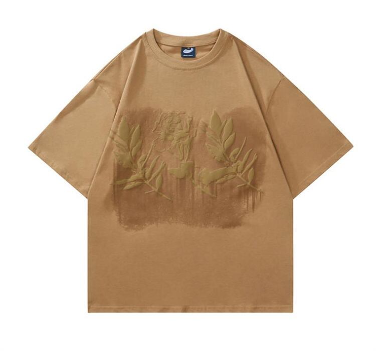 安くてよかったです 半袖 Tシャツ タイドブランド トップス レトロ ヒップホップ ローズ プリント