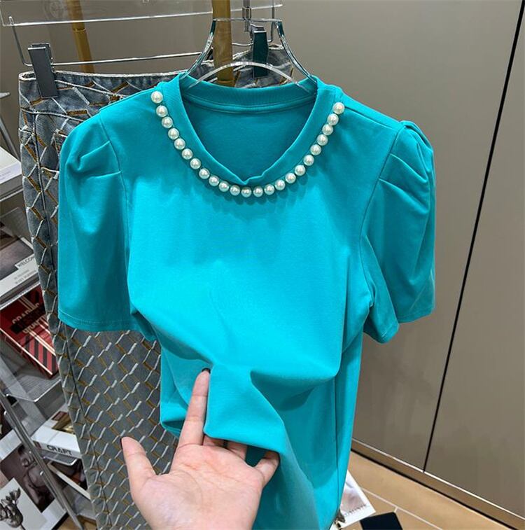 Fashions 限定発売 Tシャツ トップス スリム 大人気 半袖 フォーリンスタイル パフスリーブ