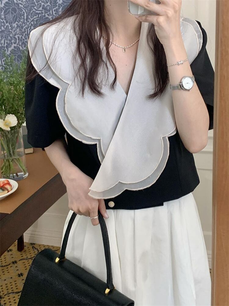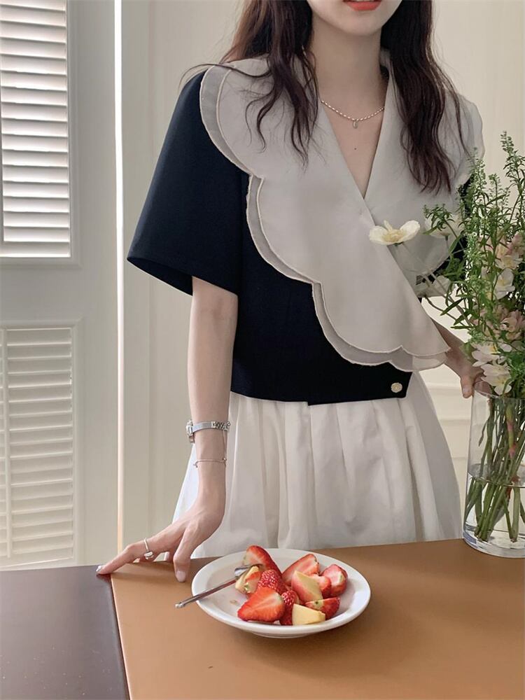 2022AW新品早割 半袖 Vネック シャツ トップス ロマンス エレガンス 新品 気質 短いスタイル