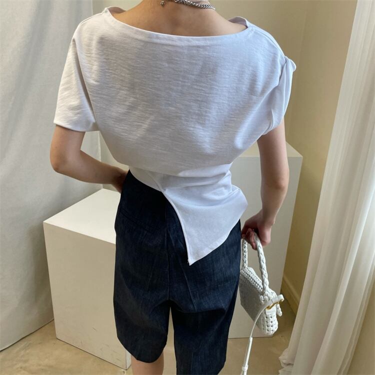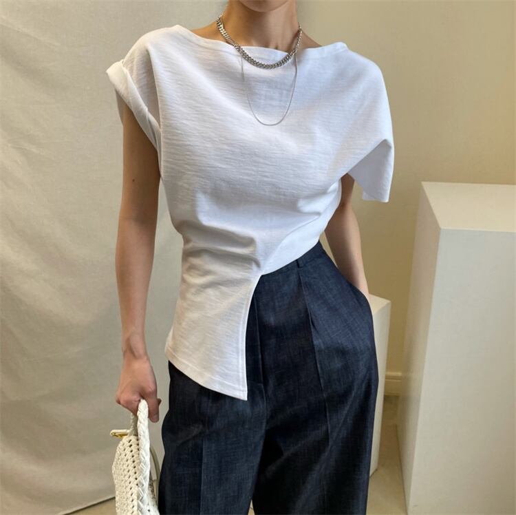 注目になる印象 カジュアル トップス Tシャツ 半袖 上着 イレギュラー スプリット スリム