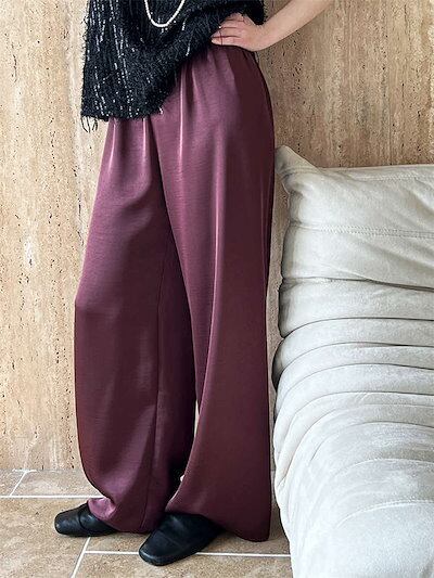 パンツ ワイドパンツ レディース サテン 春 夏 秋 無地 ボトムス イージーパンツ ガウチョパンツ ロング丈 サテンパンツ ウエストゴム ひんやり 冷感 カジュアル 可愛い 上品 きれいめ シンプル