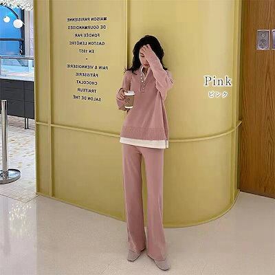ニットセットアップ レディース 秋冬 セットアップ ニット パンツ 大きいサイズ ロングパンツ セーター プルオーバー ワイドパンツ大人可愛い 可愛い かわいい おしゃれ 普段使い ゆったり 無地