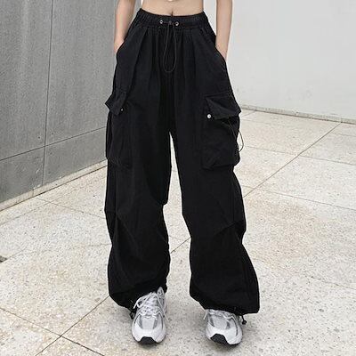カーゴパンツレディースゆったりワイドルーズズボンボトムスおしゃれかわいい黒メンズライク