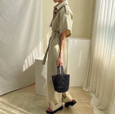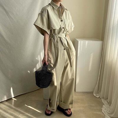 オールインワン レディース ワイドパンツ オーバーオール 春 夏 秋 半袖 ゆったり 体型カバー 女性 お呼ばれ 可愛い ワイドシルエット 大きいサイズ シンプル おしゃれ ゆったり カジュアル ナチ