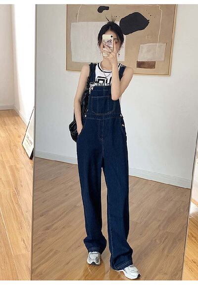 サロペット パンツ デニムパンツ オールインワン レディース ワイドパンツ 春 秋 きれいめ 着痩せ 大きいサイズ カジュアル おしゃれ 体型カバー ゆったり 女性 お呼ばれ 可愛い 無地 おしゃ
