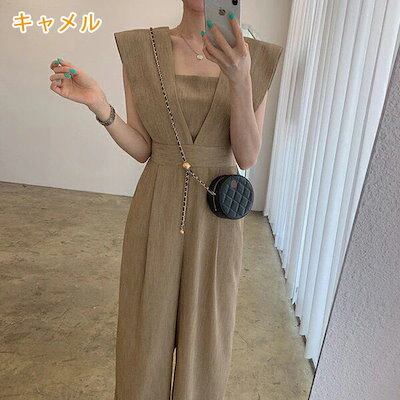 メガ割 オールインワン レディース Vネック サロペット ワイドパンツ きれいめ エレガント 美シルエット 着痩せ 体型カバー シンプル かわいい 美脚 無地 ゆったり おしゃれ カジュアル コーデ
