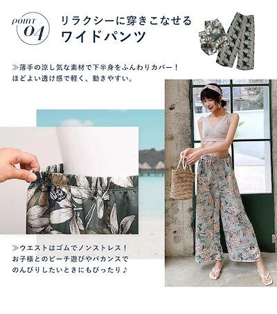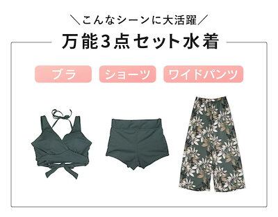 人気 水着 レディース 体型カバー 水着 タンキニ Vネック ビキニ ワイドパンツ 3点セット 代 30代 40代 ママ水着 ロングパンツ バックシャン カシュクール風 可愛い お洒落 くすみ