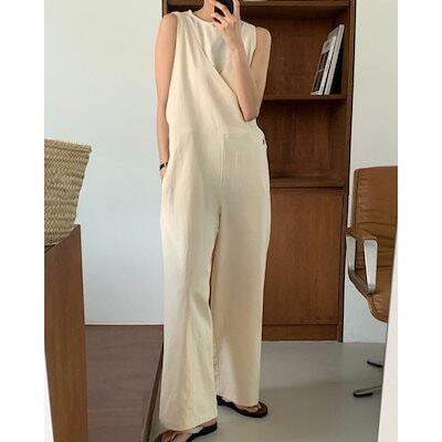 春夏 美脚 Vネック オールインワン 美シルエット レディース サロペット ワイドパンツ きれいめ エレガント 着痩せ 体型カバー シンプル かわいい 無地 ゆったり おしゃれ カジュアル コーデ ス