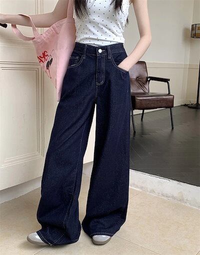 メガ割 24パンツ ロング丈 デニム ジーンズ ワイド ストレート ハイウエスト 美脚効果 脚長効果 細見え レトロ インディゴブルー 韓国ファッション レディース かわいい おしゃれ カジュアル福袋