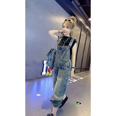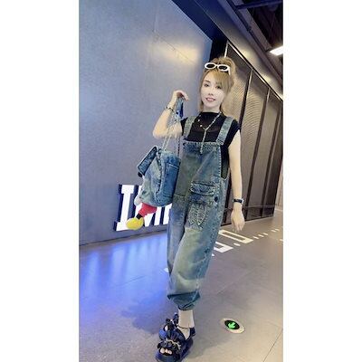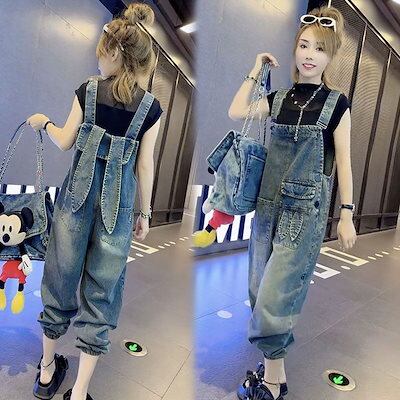 春新作 デニムサロペット レディースファッション かわいい ウサギ耳 オーバーオール ゆったり 着痩せ カジュアル ジーンズ ワイドパンツ