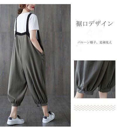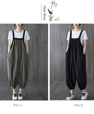 オールインワン サロペット パンツ レディース バルーンパンツ サルエル 綿混 コットン 肩紐付き 切り替え サイドポケット マタニティ 可愛い 楽ちん ゆったり シンプル ワイドパンツ 大きいサイズ