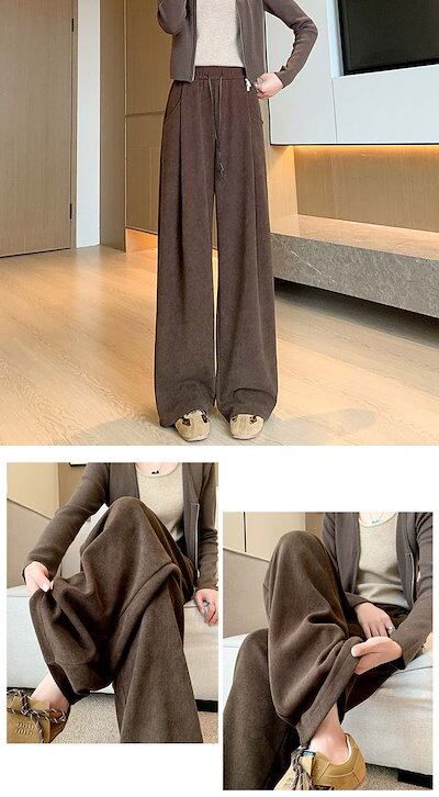 裏起毛 ワイドパンツ パンツ レディース 秋冬 イージーパンツ ロングパンツ ロング ストレートパンツ ハイウエスト ウエストゴム 裏起毛パンツ ボトムス ズボン 大人 抜け感 大人かわいい きれいめ
