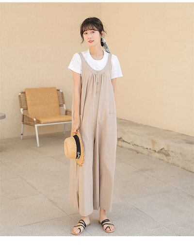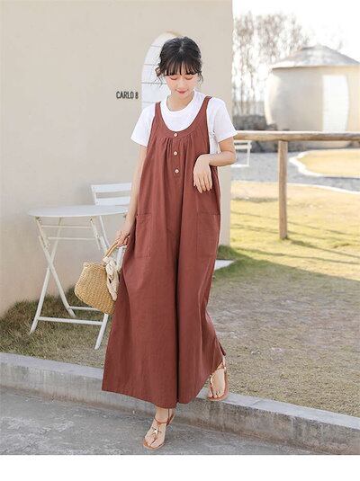 オールインワン レディース サロペット ワイドパンツ 綿麻 春 秋 ロング丈 ゆるカジ ゆったり 体型カバー 女性 お呼ばれ 可愛い 無地 大きいサイズ 体型カバー おしゃれ ゆったり カジュアル ナ