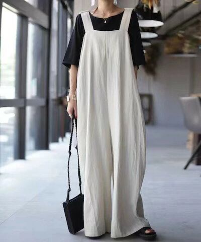 サロペット パンツ オールインワン レディース パンツ ワイドパンツ 春 秋 きれいめ 着痩せ 大きいサイズ カジュアル おしゃれ 体型カバー ゆったり 女性 お呼ばれ 可愛い 無地 薄手 おしゃれ