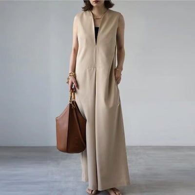オールインワン レディース サロペット パンツ ワイドパンツ 深Vネック 春 夏 秋 ゆったり 体型カバー 女性 お呼ばれ 可愛い ワイドシルエット 大きいサイズ シンプル おしゃれ ゆったり カジュ