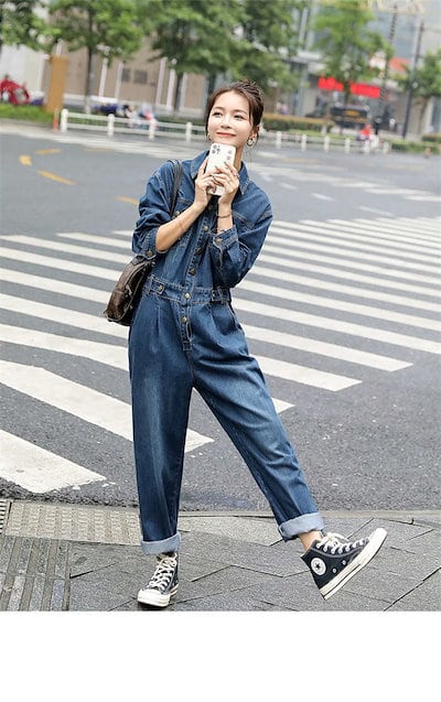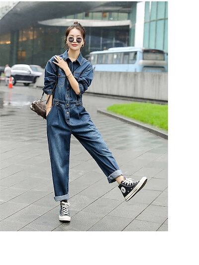 オールインワン レディース デニム 長袖 ワイドパンツ 春 秋 ゆったり 体型カバー 女性らしい お呼ばれ 可愛い 大きいサイズ おしゃれ ゆるっと カジュアル ナチュラル ゆったり シンプル 着痩