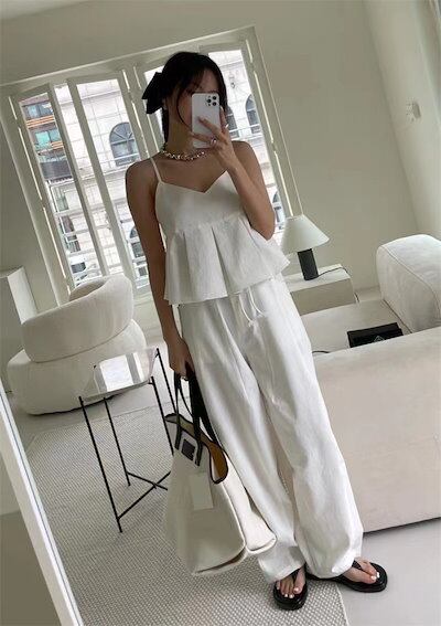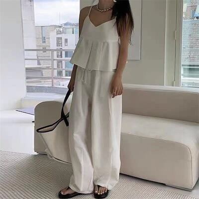 セットアップ レディース ペプラムキャミソール ワイドパンツ ハイウエスト キャミソール トップス ボトムス ロングパンツ 大人可愛い お出かけ 旅行 デート 女子会 人気 上品 2点セット 涼しい