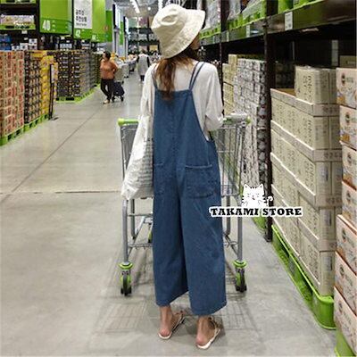 サロペット レディース オールインワン オーバーオール デニム 大きいサイズ ロング ワイドパンツ 9分丈 ゆったり きれいめ 可愛い 夏 秋 学生