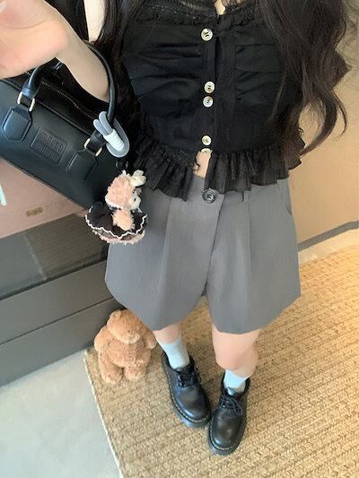 25 パンツ ショート丈 タック ワイド ハイウエスト 美脚効果 脚長効果 細見え 黒 おしゃれ かわいい 韓国ファッション レディース お出かけ