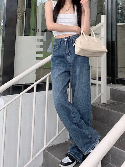25パンツ デニム ジーンズ ワイド ストレート ハイウエスト 脚長効果 美脚効果 細見え カジュアル おしゃれ かわいい シンプル 韓国ファッション レディース お出かけ
