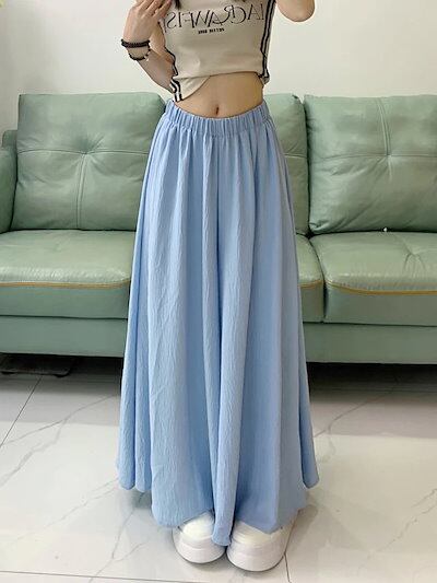 25 パンツ ロング丈 フレア ワイド ウエストゴム ハイウエスト 美脚効果 脚長効果 細見え ゆったり 白 黒 茶色 紫 韓国ファッション レディース かわいい おしゃれ カジュアル お
