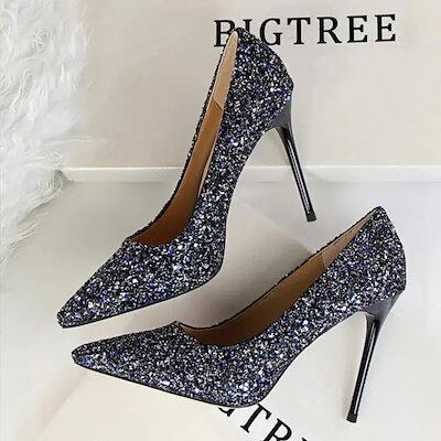 メガ割ヒール 大きいサイズパンプスキラキラハイヒールシューズキラキラポインテッドトゥラメ脚グリッター靴ピンヒール痛くない結婚式パーティー発表会披露宴謝会お呼ばれキャバ嬢華やか95cm レディース 韓国