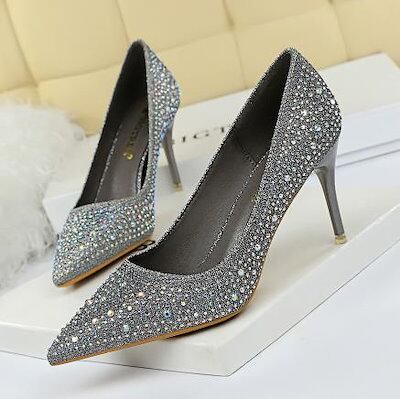 【メガ割】ラッキーボックス ビンヒールキラキラハイヒール 0-250選択可パンプスパーティーシューズ 8cmヒール ポインテ