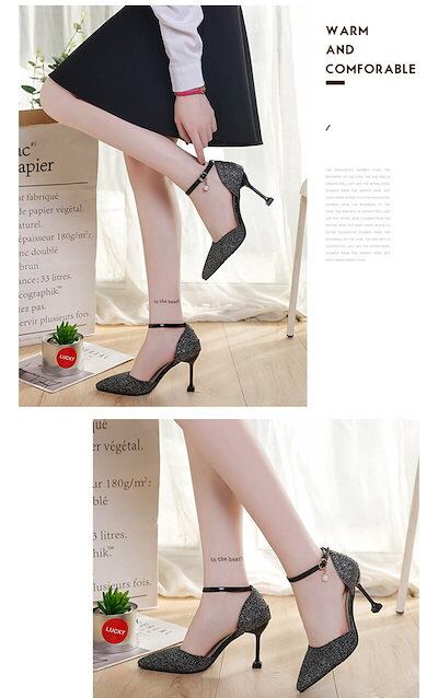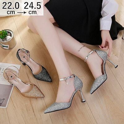 パンプス ストラップ 痛くない 歩きやすい 走れる 楽 9cmヒール キラキラ レディース 入学式 アンクルストラップ ポインテッドトゥ ストラップ ラインストーン ブラック 黒 大きいサイズ 結婚式