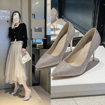 パンプス ハイヒール ピンヒール キラキラ 通勤用 仕事 美脚パンプス 痛くない ベーシック シンプル 華やか フォーマル パーティー ポインテッドトゥ パンプス 結婚式 披露宴 謝恩会 お呼ばれ 大