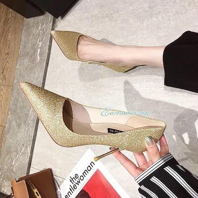 新品 大人気 ハイヒール パンプス 痛くない レディース シンプル フォーマル ピンヒール 幅広 ポインテッドトゥ 走れる 仕事 美脚靴 脱げない キラキラ シューズ