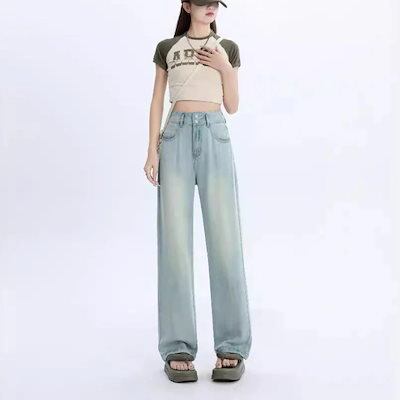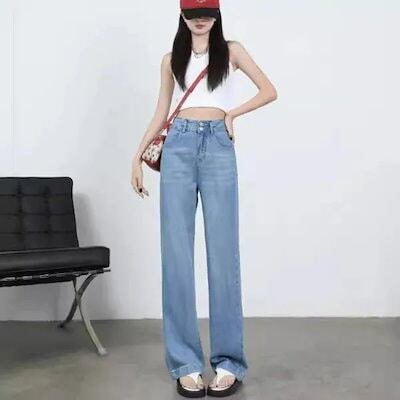 2024 新 ジーンズ レディーリヨセルテンセルジーンズレディースサマーシルクワイドレッグジーンズレディースドレープ薄手ゆったりアイスシルク