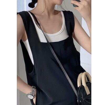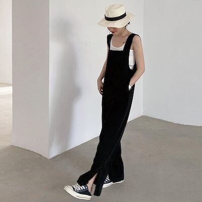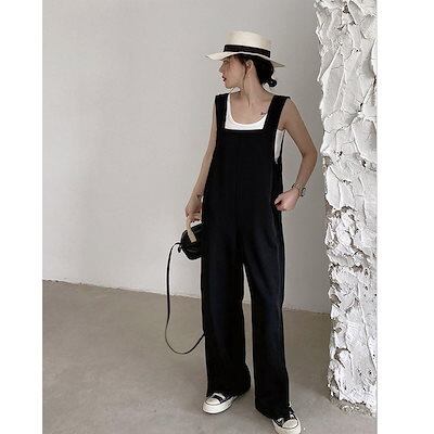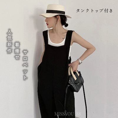夏 薄手 垂れ感 ゆったり サロペット 二点セット サロペット レディース ワイドパンツ 着痩せ 気質 百掛け おしゃれ カジュアルパンツ