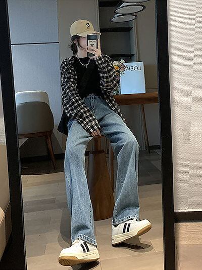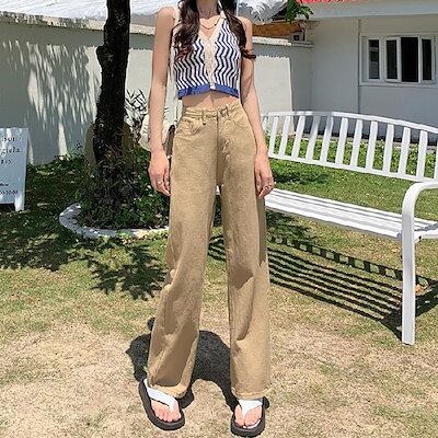 ハイウエストワイドジーンズレディース新型夏の薄手スリムダウンレトロストレート モップズボン
