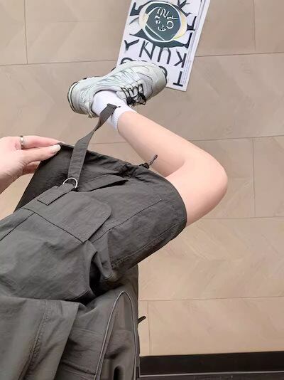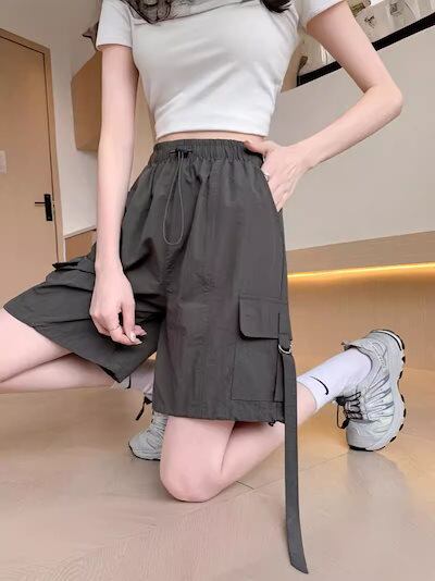 グレーワークショーツレディース夏新作ハイウエストワイドレッグ薄手カジュアルパンツ速乾スポーツアメリカン5分丈パンツ