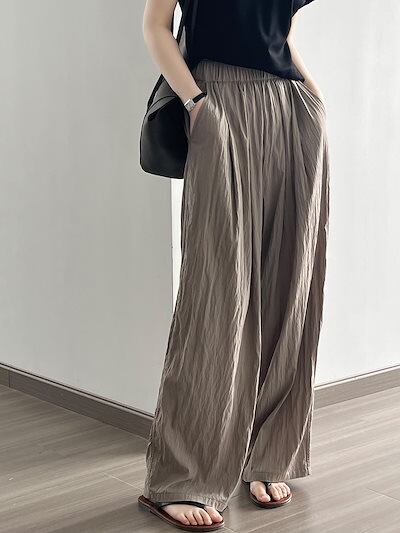 「YS良品」 夏 しわデザイン ロングパンツ ワイドパンツ ゆったり フレア 薄手 皺 スラックス レディース おしゃれ ファション メガ割