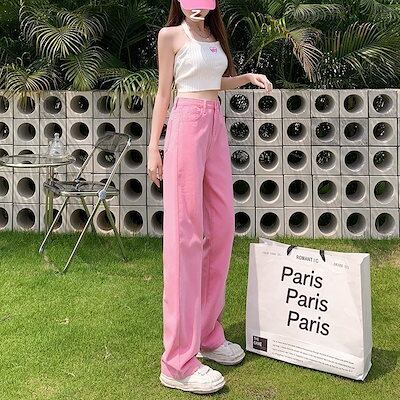 8COLORS 2024春夏 ハイウエスト おしゃれ 薄手 デニムパンツ ゆったり 大きめサイズ 着痩せ モップパンツ ワイドパンツスラックスパンツ 韓国ファッション スキニーパンツ 脚長効果! ひん