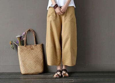 リネン パンツ レディース 涼しい バルーンパンツ アンクル サルエルパンツ 綿麻 イージーパンツ リネン コットン ワイドパンツ 体型カバー ボトムス 森ガール ズボン ゆったり 薄手 リラックス