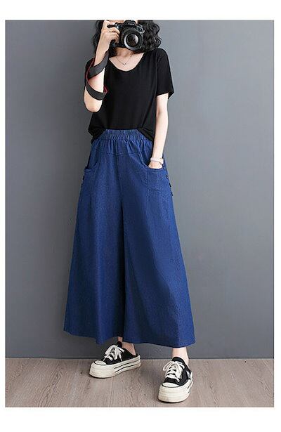 デニムパンツ レディース 秋 薄手 ワイドパンツ 大きいサイズ デニム ボトムス リラックスパンツ ゆったり 体型カバー ストレッチデニム 大人 ウエストゴム ポケット付き 低身長 柔らか 着?せ 美