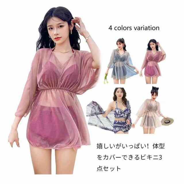 3点セット水着レディースビキニ★★ 水着 レディース おしゃれ ビーチ ビキニ リゾート プール 体型カバー スリム 可愛い インスタ映え セパレート 露出控えめ 盛れるハイウエスト 韓国 日焼け対策 競泳 スイムウェア日焼け防止 スタイルアップ 着痩せ