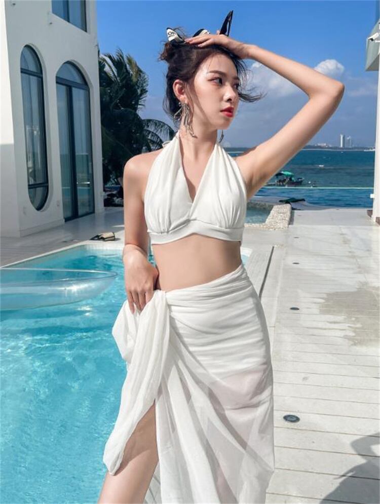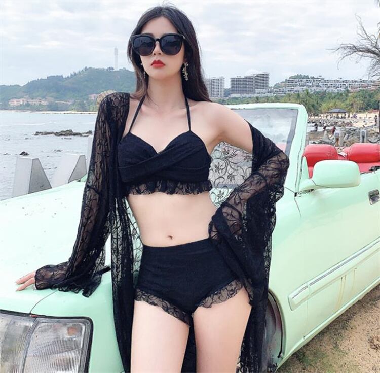 INSスタイル ビキニ 3点セット レース 長袖 スパ お出かけ ブラウス 水着 デザインセンス