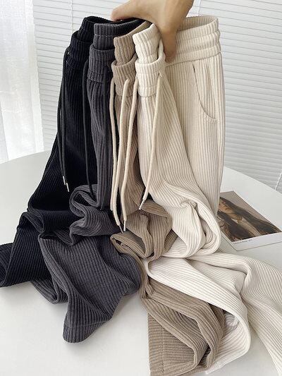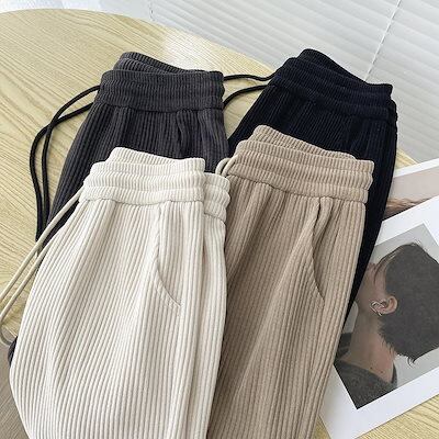 カジュアルパンツ 春秋新作 美脚 グレー ワイドパンツ レディー ストレートシリンダ ハイウエスト 垂下感